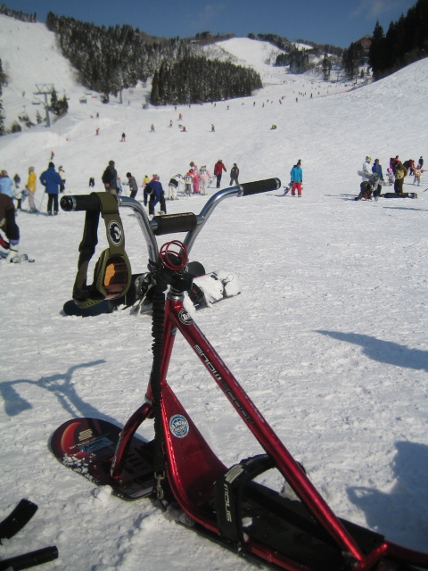 山も雪がいっぱいですね!!当店では人気のある、SNOWSCOOTをレンタルしています。ゲレンデで借りると高値だし、、でも、一度は乗ってみたい!購入を考えているが高値だし、、という方も多いはずですよね。当店では子供も乗って楽しめるKIDS用もレンタルでありますのでお父さんと一緒に楽しめますね★この季節チャレンジしてみてはいかがでしょう!楽しいこと間違いなし。 もちろんお貸しする前に店長のレッスンも受けられるので安心です! ★大人用・1台と子供用・1台をご用意★ ◆レンタル費用は一日・\2,000- ただし、店頭に引き取りに来ていただけるお客さま限定です。 ご予約はマツイサイクルまで♪ 052−612−2681 滑走可能なゲレンデなど情報満載です! SNOWSCOOT web http://www.snowscoot.co.jp/ |