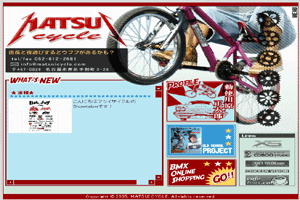 BMXが詳しく解説されているホームページを発見してしまいました! ◆チャリマスターへの道◆ http://www.bicyclenavi.com/ しかも、当店がオススメショップに!! ありがとう御座います。 http://www.bicyclenavi.com/kimattara.html マツイサイクル 052-612-2681 matsuicyle@yahoo.co.jp |