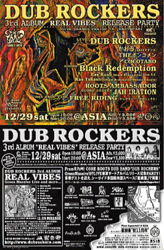告知でーす!!今夜開催でーす!!!半田CREWのみんなとBMXショーします! 参加したい!!ってライダーは現地集合かマツイサイクルに20時までに来てください。 Green Massive Crew prezents DUB ROCKERS ”REAL VIBES” 3rd albumRelease party Greenmassive Crew PRESENTS ■2007/12/29(SAT) ■@ASIA山海 ■OPEN 19:00/ START 20:00 ■ADV \3,000/ DOOR \3,500 CLOSE 翌2:00 ■LIVE ★DUB ROCKERS ★かおる[JAZZ マタンゴ] ★THE ボンゴメン ★COCOTABO ■SOUND ★BLACK REDEMPTION ☆Ras Kush[Black Redemption]from N.Y ☆Ras Takashi[Black Redemption/Dubsensemania] ★ROOTS AMBASSADOR ■SOUND SYSTEM ★JAH IRATION ■BMX SHOW TIME ★FREE RIDING[ケッタマシーンプロジェクト] ◆from北九州!CORE ROOTS DUB BAND "DUB ROCKERS" GreenMassive 07'LIVE音源3rdアルバム リリース記念PARTY! 豪華ゲストを迎え、シーサイド多国籍南国スペース『亜細亜』で開催!!! HP http://www.seaside-asia.com/event.html |