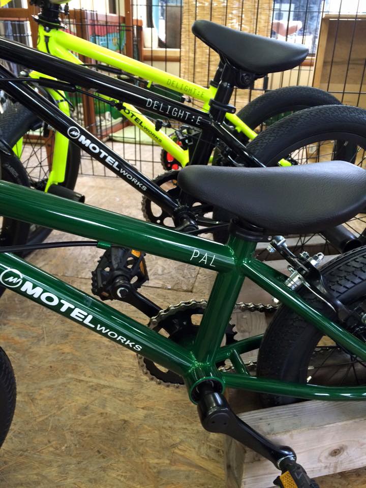 手前から、PAL12"(metalic-green),DELIGHT-E(black&neon-yellow) すでにmetalic-redは旅だってしました〜★ 乗り易く、本来の性能を完璧状態にセットアップしてあります!ブレーキセッティングには自信があります! 是非、checkお願いします!! |